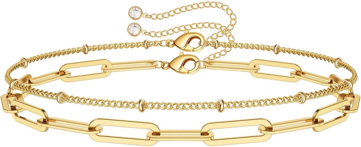 سوار مطلي بالذهب عيار 14 قيراط طبقات لطيف قابل للتعديل بتصميم سلسلة عين مجوهرات